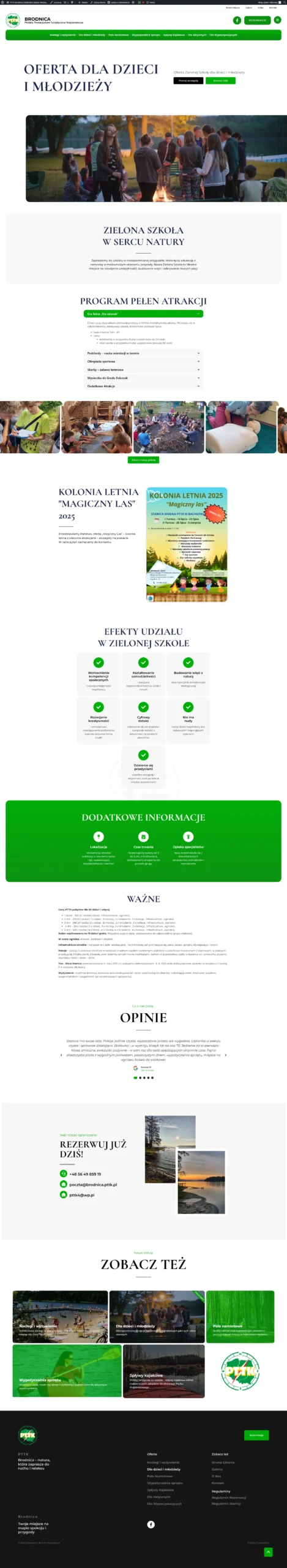 Witryna obejmuje m.in. opisy noclegów, zielonych szkół, spływów kajakowych, pola namiotowego oraz wypożyczalni sprzętu. Zadbano o intuicyjną strukturę treści, prostą nawigację i pełną responsywność – tak, by użytkownicy mogli szybko dotrzeć do interesujących ich informacji niezależnie od urządzenia.