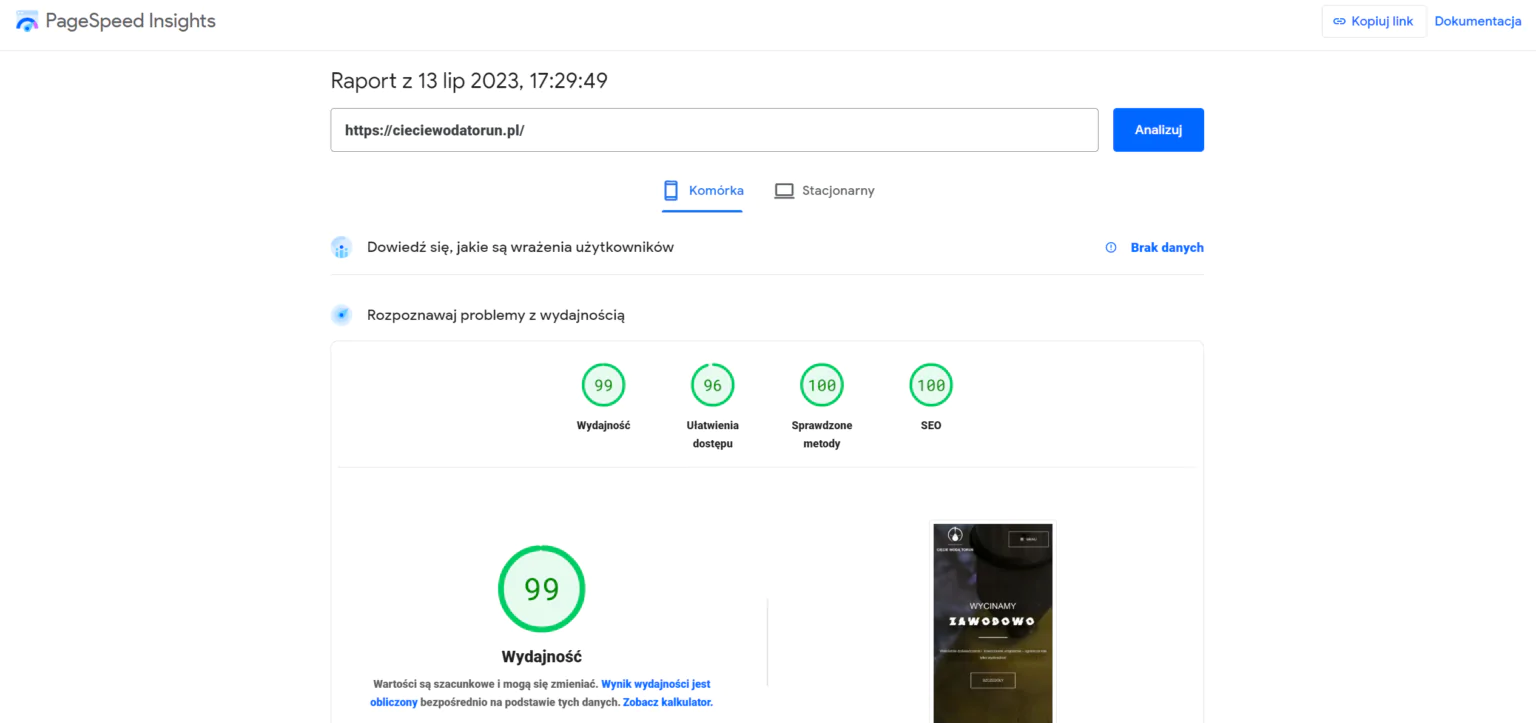 Strona została również zoptymalizowana pod kątem szybkości działania.