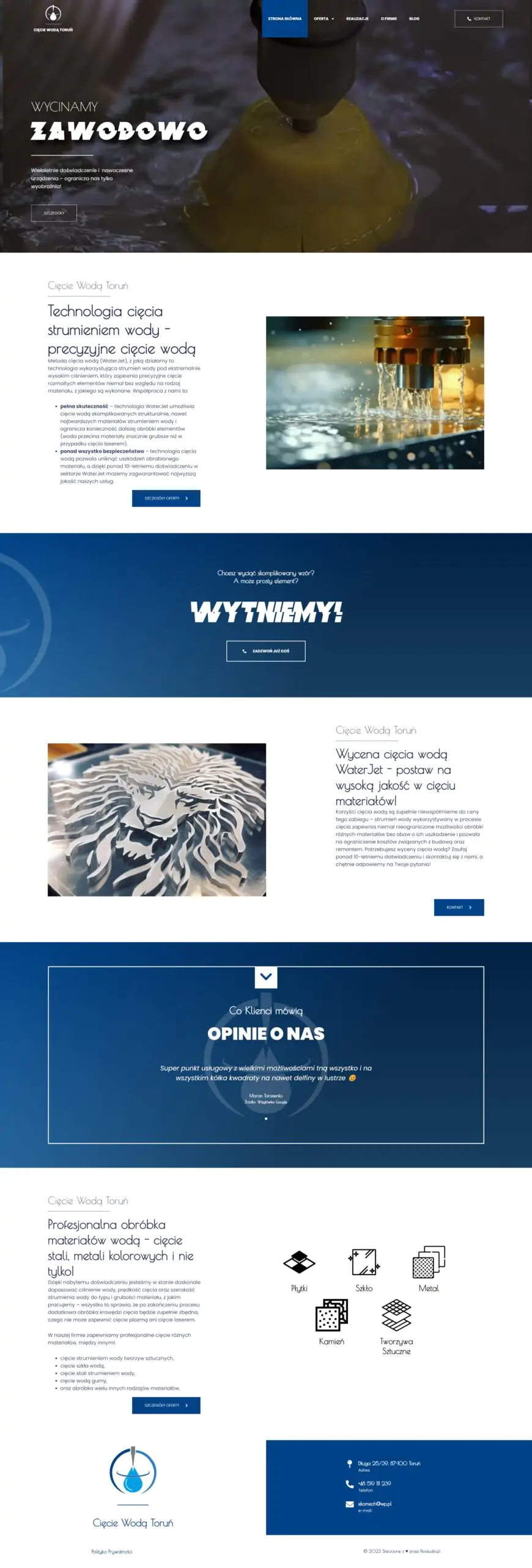Kolejny projekt za nami – tym razem dla firmy z Torunia zajmującej się cięciem w różnego rodzaju materiałach przy pomocy wody pod wysokim ciśnieniem (WaterJet). Całość standardowo już wykonana w CMS WordPress dzięki czemu strona internetowa będzie mogła być w przyszłości łatwo rozbudowana o kolejne sekcje.