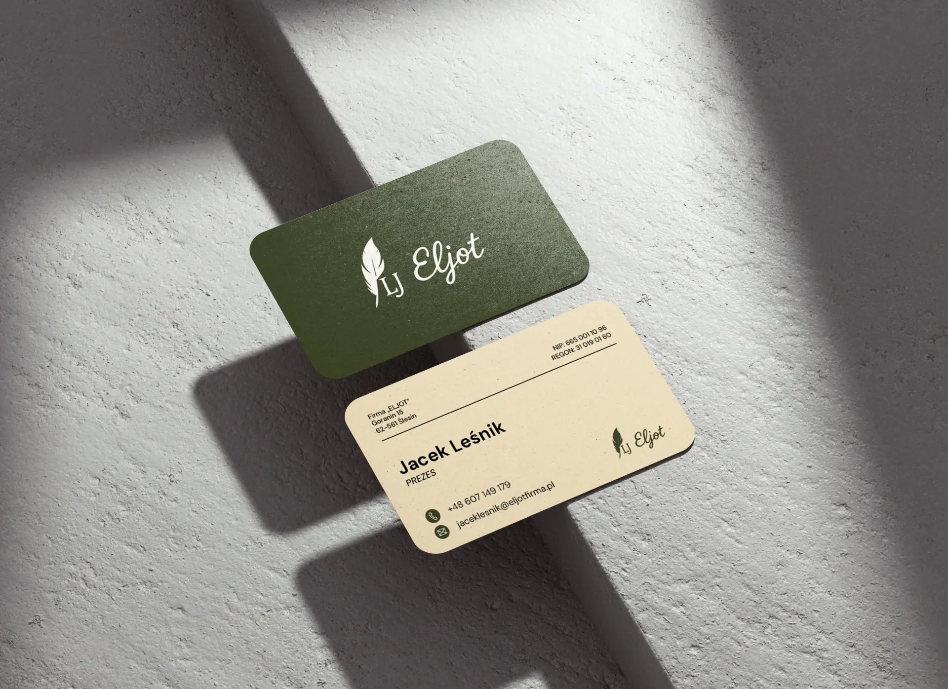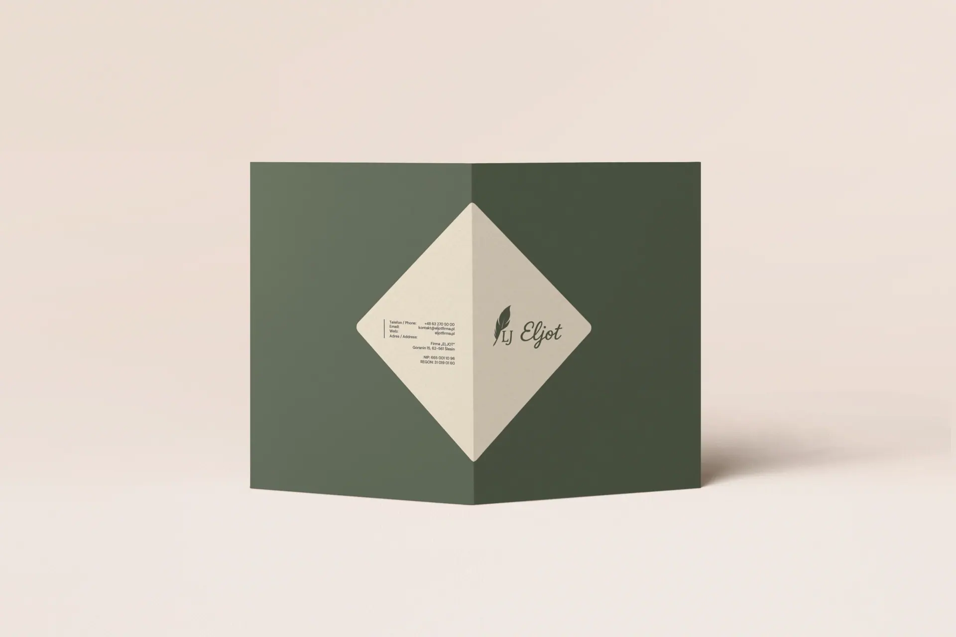 Branding & Print: Logo, wizytówki, teczki, broszura 4-str, etykiety produktowe.