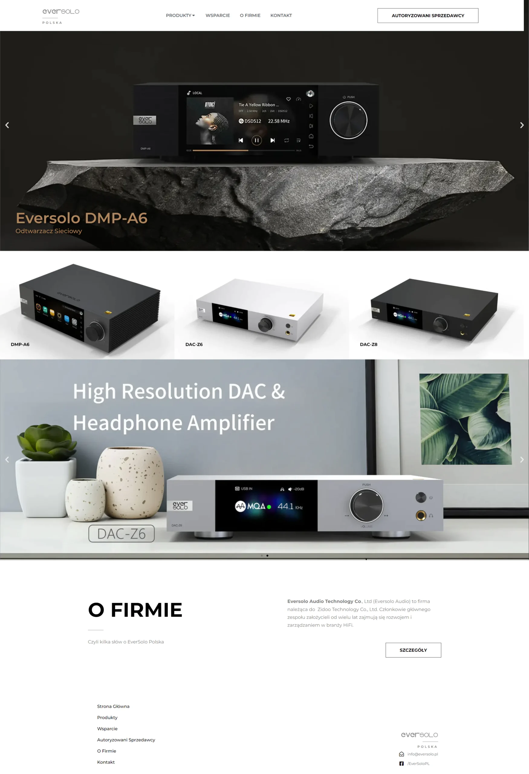 Strona internetowa stworzona dla firmy EverSolo Polska – lokalny oddział międzynarodowej firmy zajmującej się produkcją i rozwojem sprzętu audio.