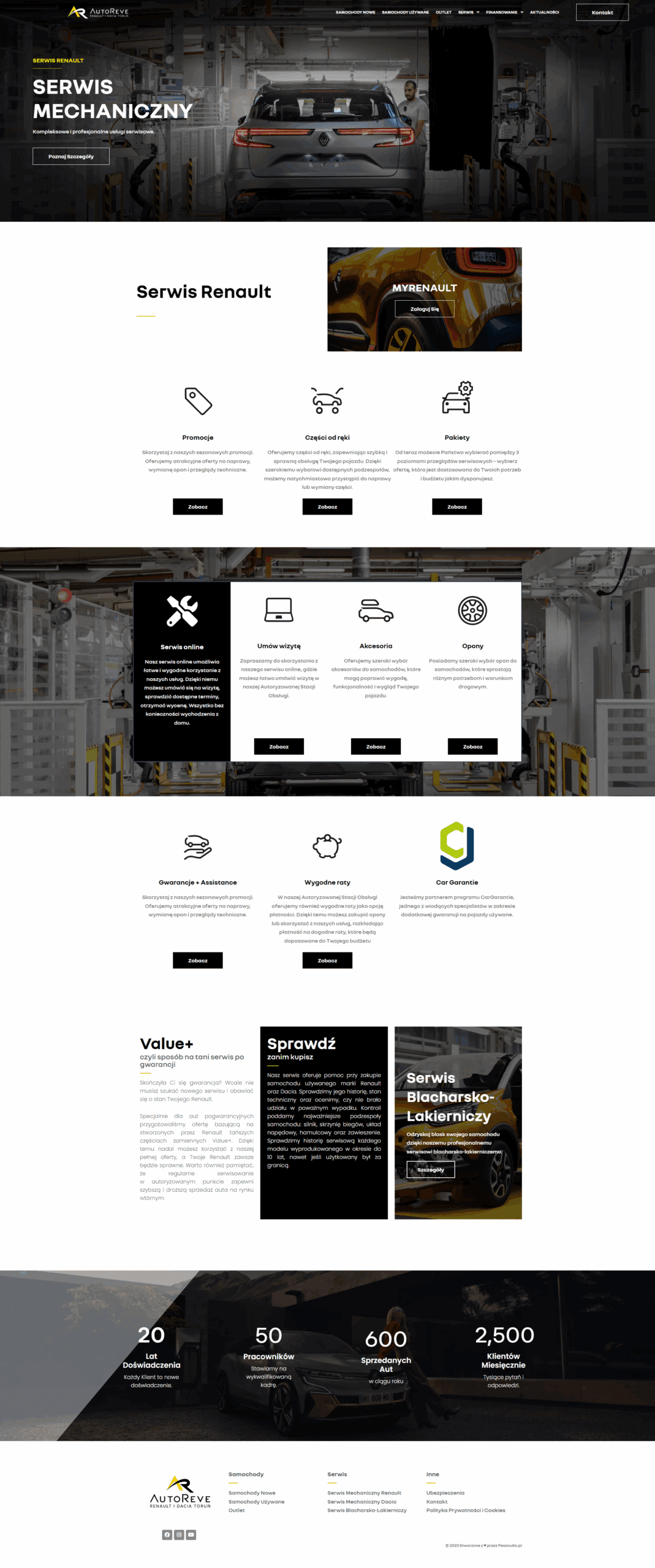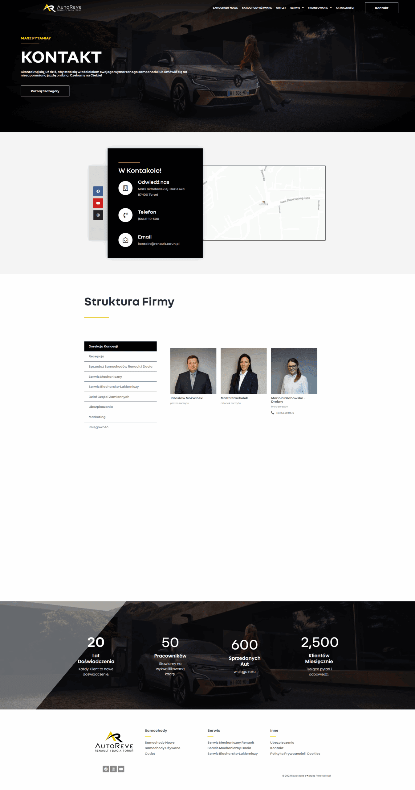 Strona internetowa dla firmy Auto Reve z Torunia, która jest autoryzowanym dealerem marki Renault oraz Dacia.