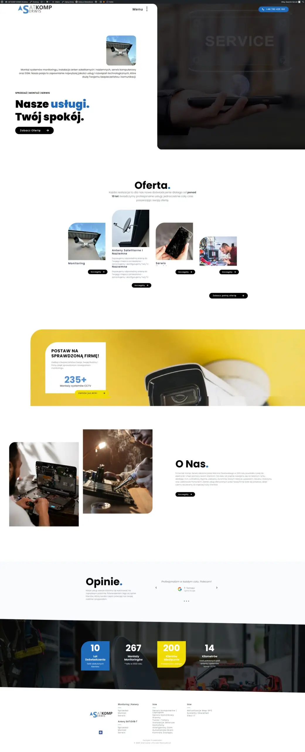 Strona internetowa dla lokalnej firmy SAT-KOMP-SERWIS. Firma ta specjalizuje się w systemach monitoringów, montażem i serwisem anten satelitarnych i naziemnych oraz serwisem komórkowym i komputerowym.