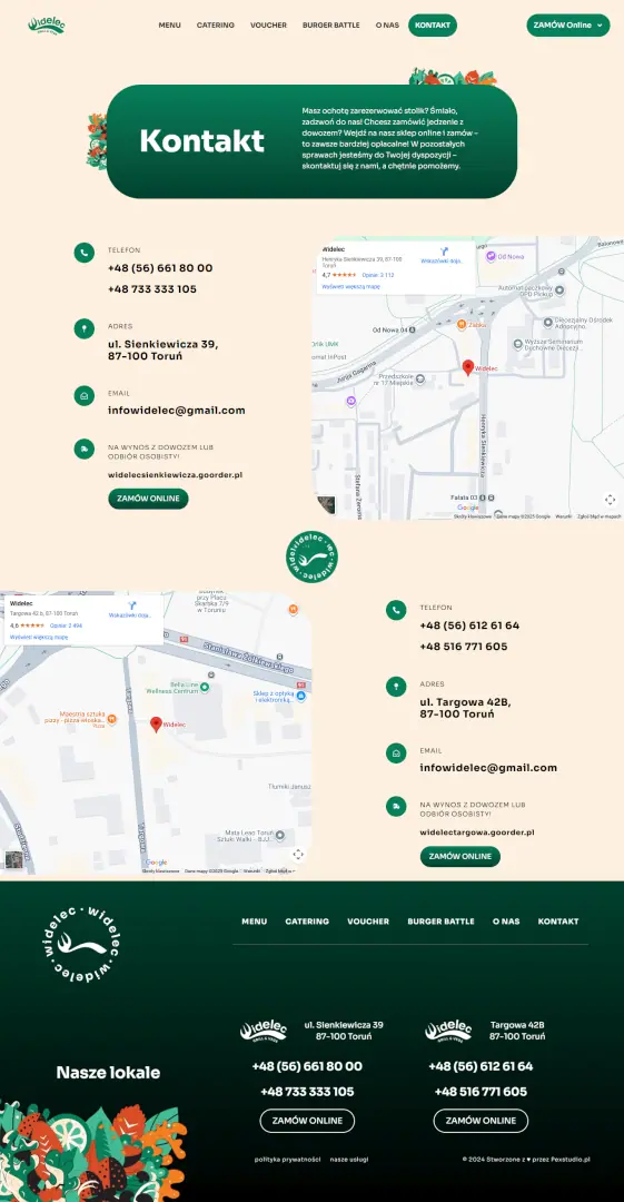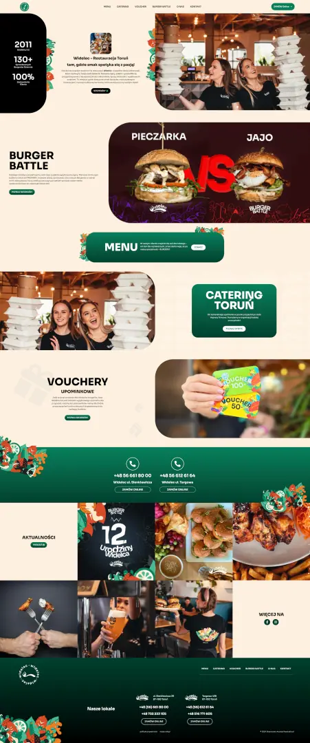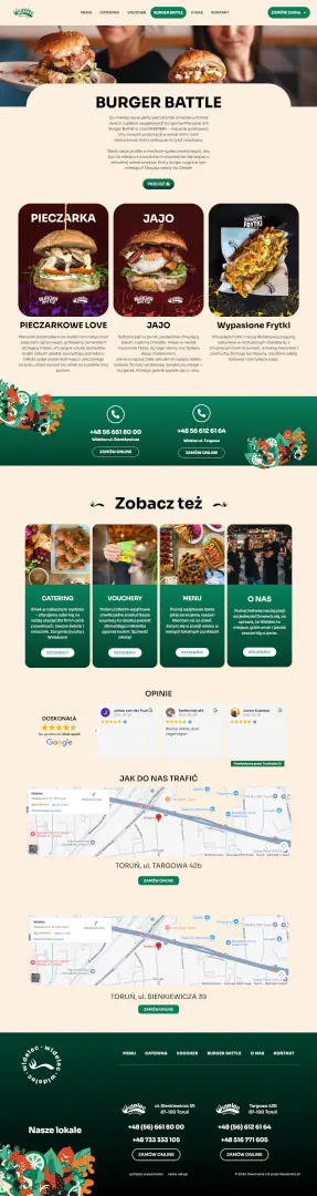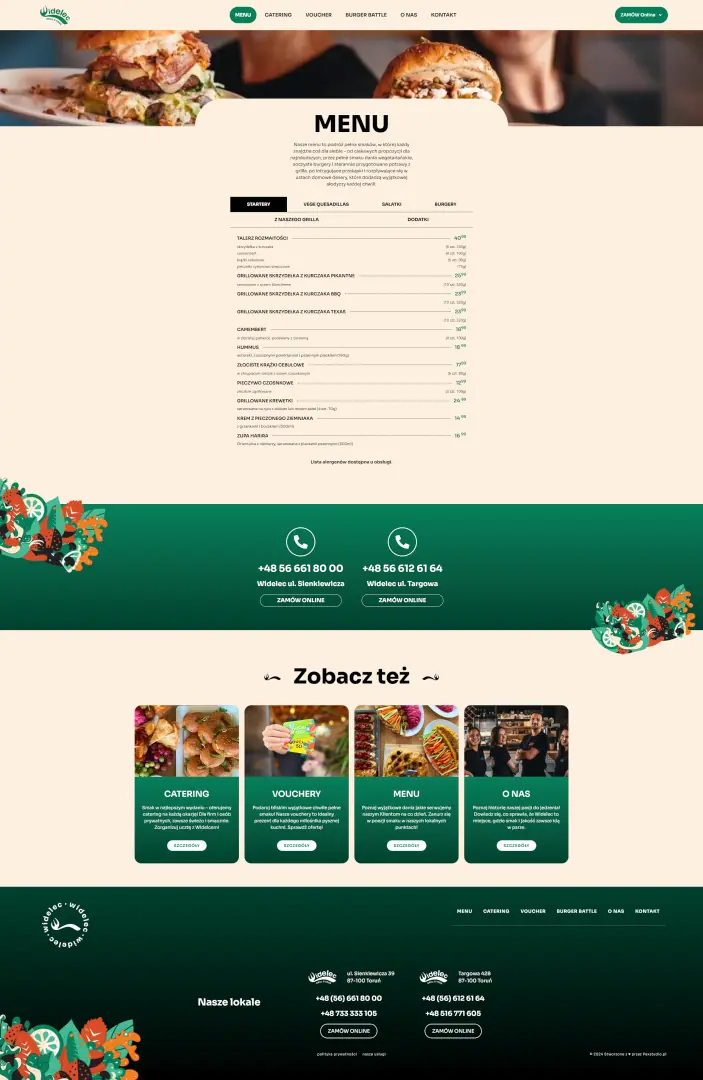Nowa strona została zaprojektowana w podejściu mobile-first i wykonana w dwóch wersjach językowych (PL / EN). Użytkownicy mobilni mogą szybko zapoznać się z menu, lokalizacjami restauracji oraz w prosty sposób przejść do składania zamówień. Zamiast rozbudowanego sklepu wdrożono integrację z zewnętrznym systemem GoOrder, dzięki czemu proces zamówień pozostał szybki i intuicyjny.